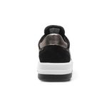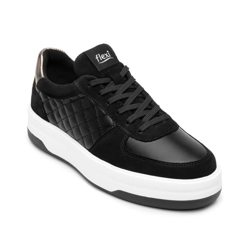 línea de zapatillas que destacan por su plataforma plana que ofrece un estilo moderno y llamativo. su diseño con detalles capitonados y tonos metálicos, los hace ideales para un look casual y versátil.